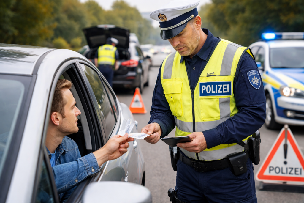 • Führerschein & Fahrzeugpapiere vorzeigen